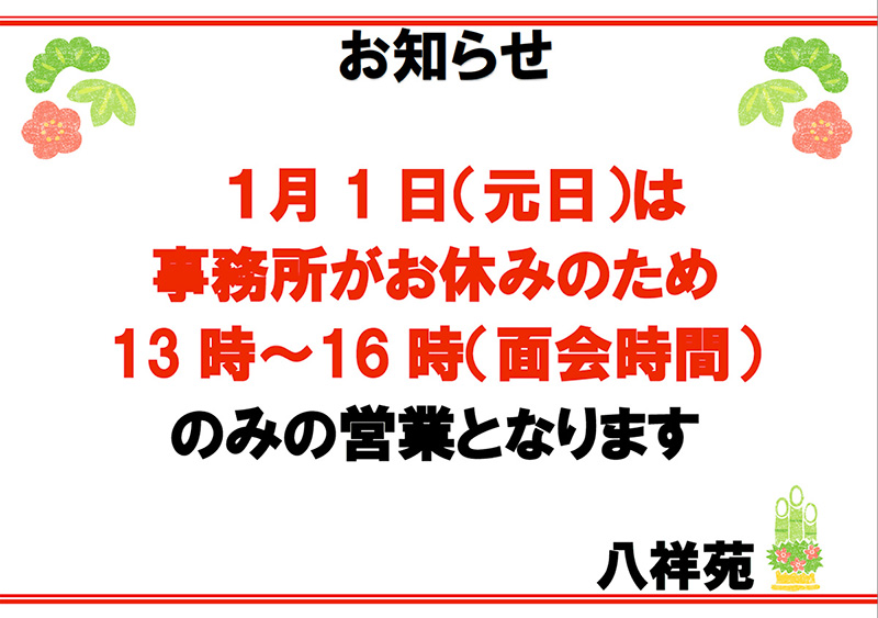 訪問看護(訪問看護ステーション八祥苑)事業を廃止いたしました。